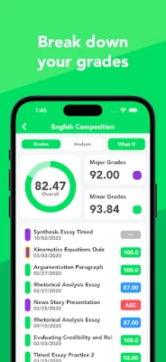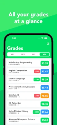 View your class averages over time to see trends and improvements. You can also see how your average has changed since the last time you opened the app, and see which grades have been recently added.
