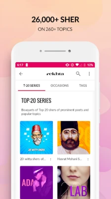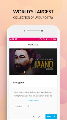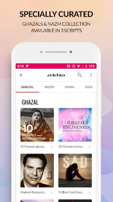 Rekhta has the best collection of ghazals and nazms of famous Urdu poets like Mirza Ghalib, Meer Taqi Mir, Allama Iqbal, Faiz Ahmed Faiz, Jaun Elia, Gulzar, Javed Akhtar, Rahat Indori, and other major poets. You can also read shayari of progressive poets, women poets, and budding young poets.