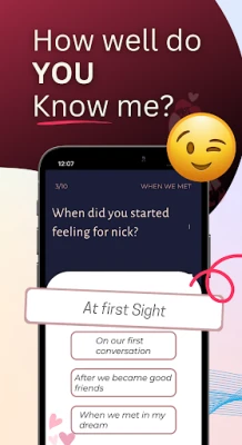 Also, Our relationship games for couple feature two thrilling rounds of gameplay. In the first round, answer couple questions about yourself, and in the second round, guess your partner's answers. It's a delightful way to check ‘how well do you know me?’